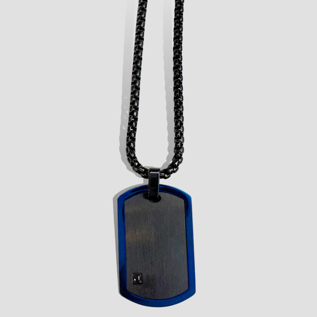 Men's Black and Blue Stainless Steel Dog Tag Necklace
