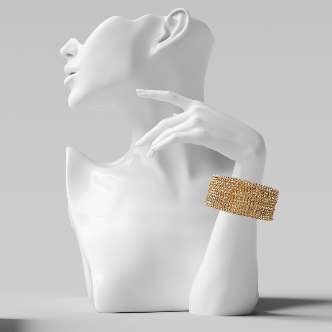 MultiLayer Twelve Row Gold Crystal Rhinestone Cuff Bracelet