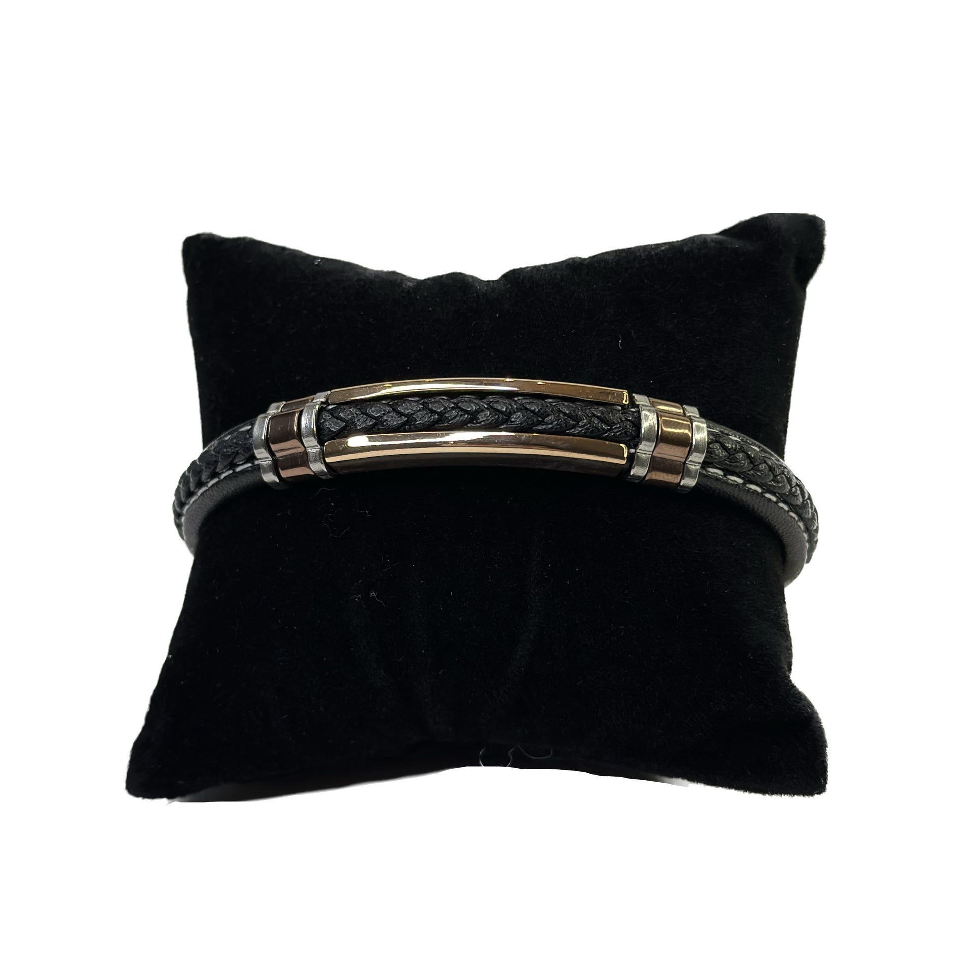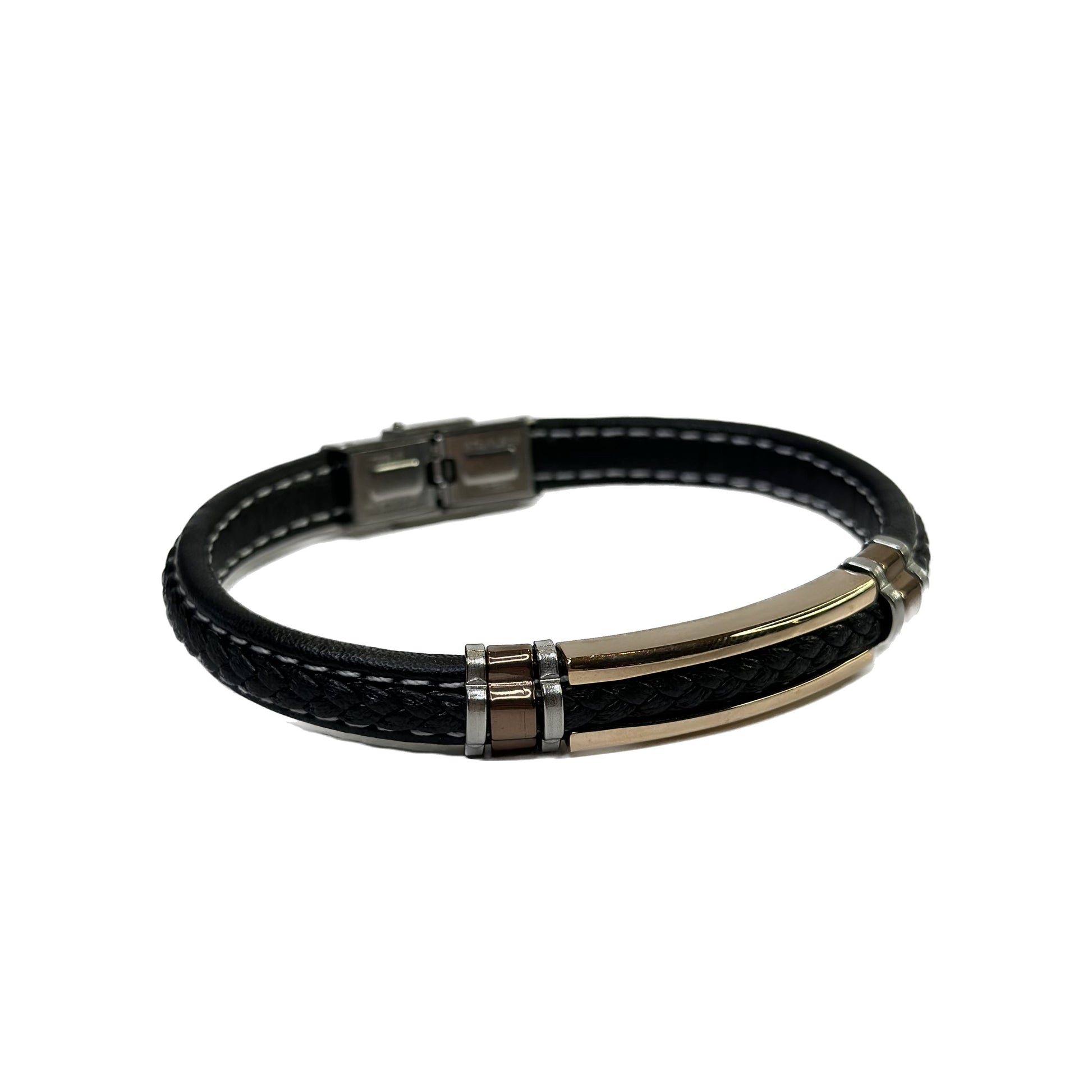 Sleek gentlemen leather bracelet with strap made of stainless steel.