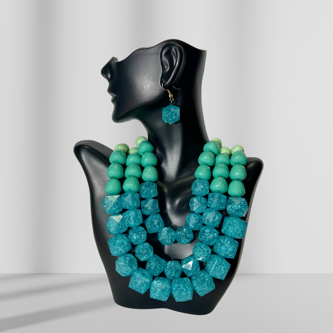 Resin Layered Necklace & Drop Earrings